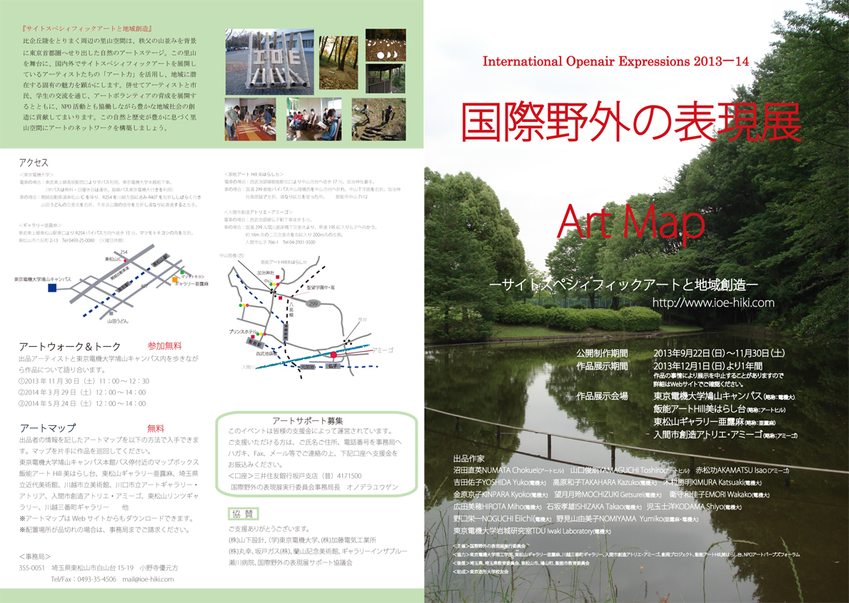 アーカイブ○読売新聞に、国際野外の表現展の記事が掲載されました。[ 2010/10/2 ] ○東京新聞埼玉版に、国際野外の表現展の記事が掲載されました。[ 2010/9/28 ] ○まちネタ!(ケーブルテレビ)で放送予定[ 2010/9/22 ] 2013年 アートトーク・プレゼンテーション・レセプション |